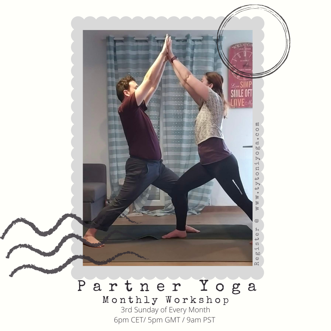 So the monthly Partner Yoga Workshop will be on the third Sunday of every month. Which means, this month it lands on Sunday the 21st. The time will be the same, 6pm CET, 5pm GMT, 9am PST.